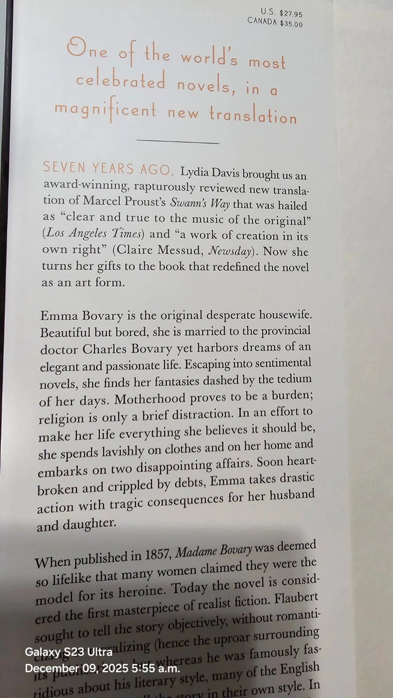 Selling a copy of Madame Bovary by Gustave Flaubert, translated by Lydia Davis. It's a celebrated novel and a magnificent new translation!