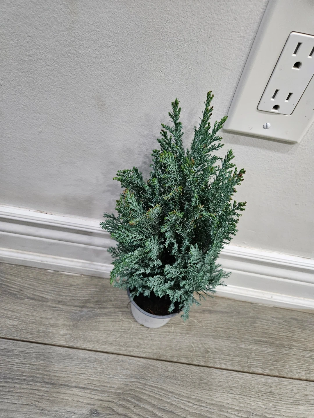 I'm selling a lovely blue juniper plant in a pot! It's perfect for adding a touch of greenery to your home or balcony. It's in great condition and ready to brighten up any space