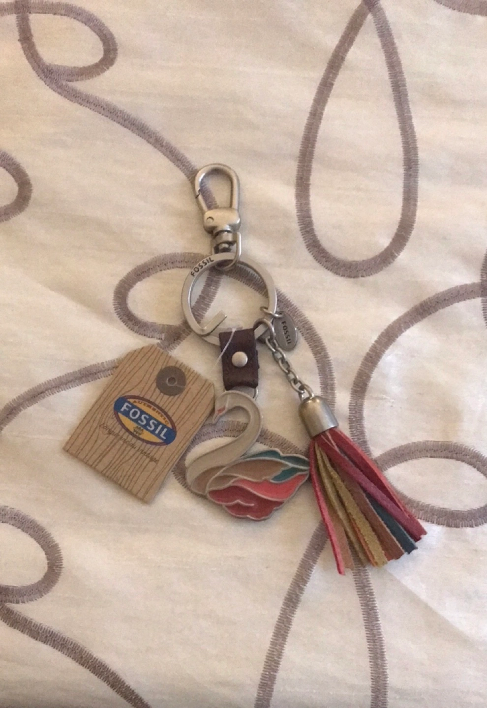 Fossil Swan Keychain with Tassel