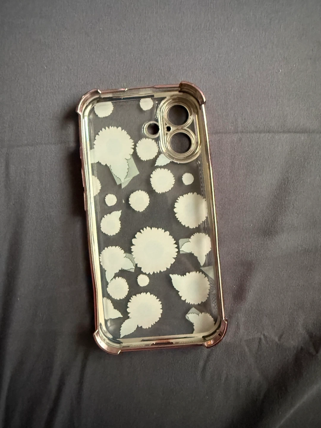 Selling a few iPhone cases. One is clear with a sunflower design, and another is a pretty rose gold colour! They're both in great condition.