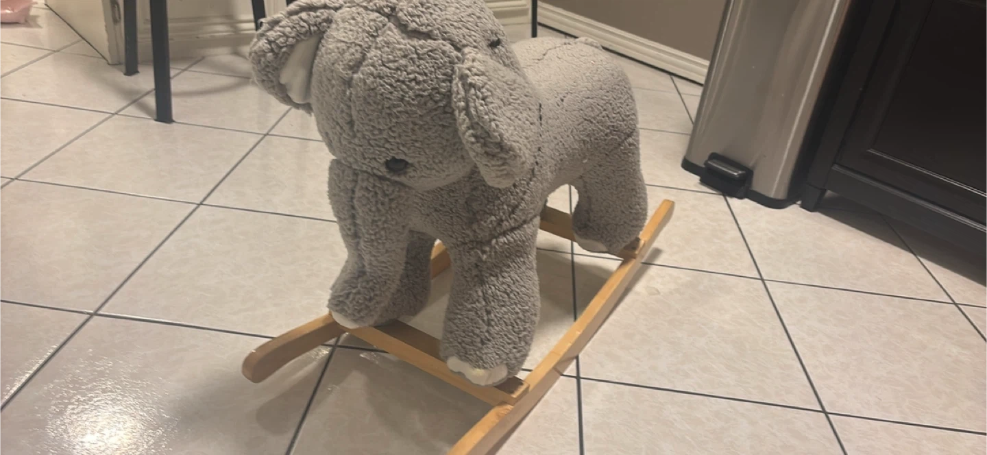 Selling a Pottery Barn Kids elephant rocker! It's in good condition and musing a handle. This adorable rocker is perfect for providing hours of fun and gentle exercise for your child. It's made with soft, plush materials and a sturdy wooden base, ensuring both comfort and safety. Your kiddo will love rocking back and forth on this cute elephant!