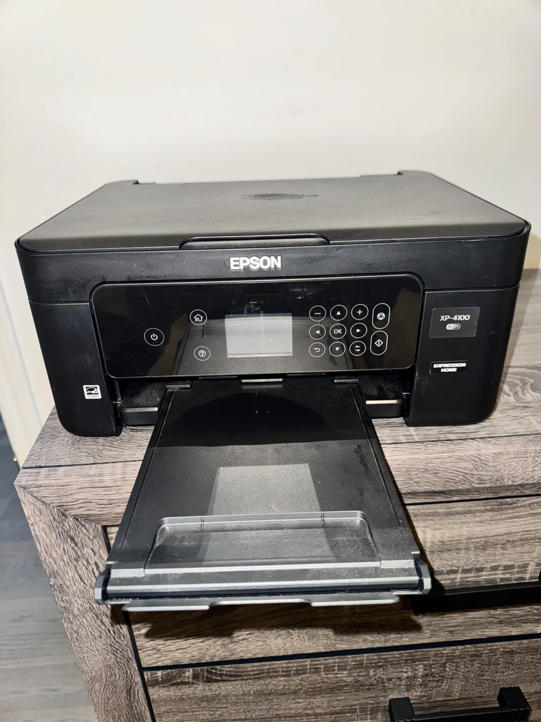 Selling an Epson Expression XP-4200 printer. It's in good working condition and ready for a new home office or school setup! It has a sleek design and is easy to use. Perfect for printing documents and photos.