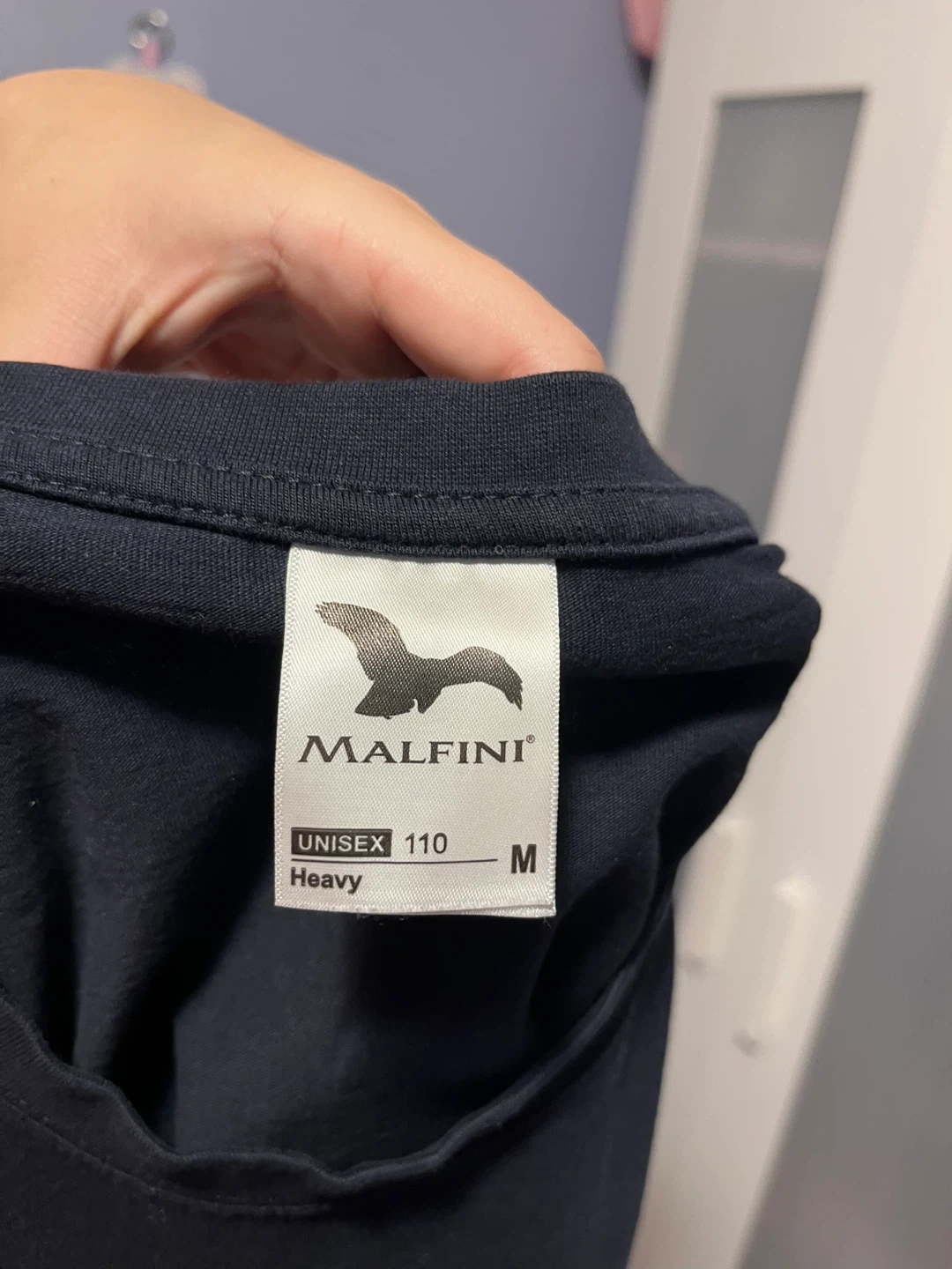Selling a Malfini black t-shirt in size M. It features a small "Bell" logo on the front. It's in great condition and ready for a new owner!