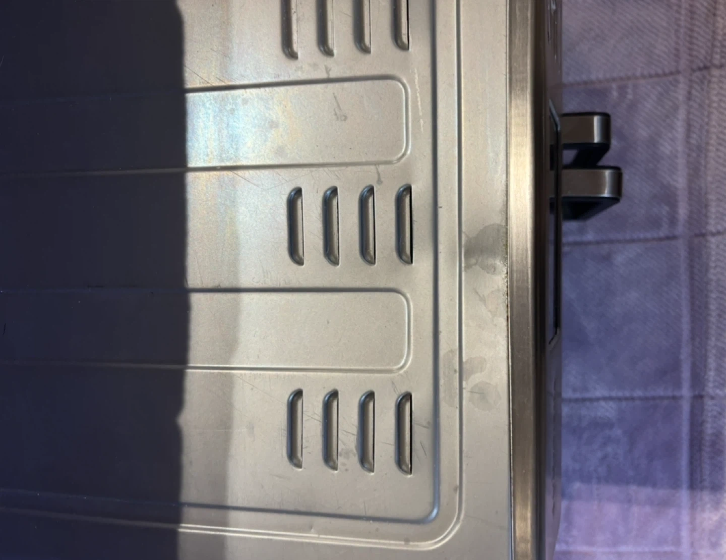Never used, just kept in storage. There is a small dent on the top from being stored, but it doesn’t affect how it works.