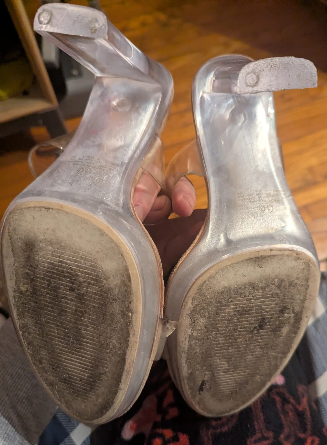 Selling a pair of Dream Pairs clear heels in a size 10. They have a unique clear design. Perfect for adding a stylish touch to any outfit!