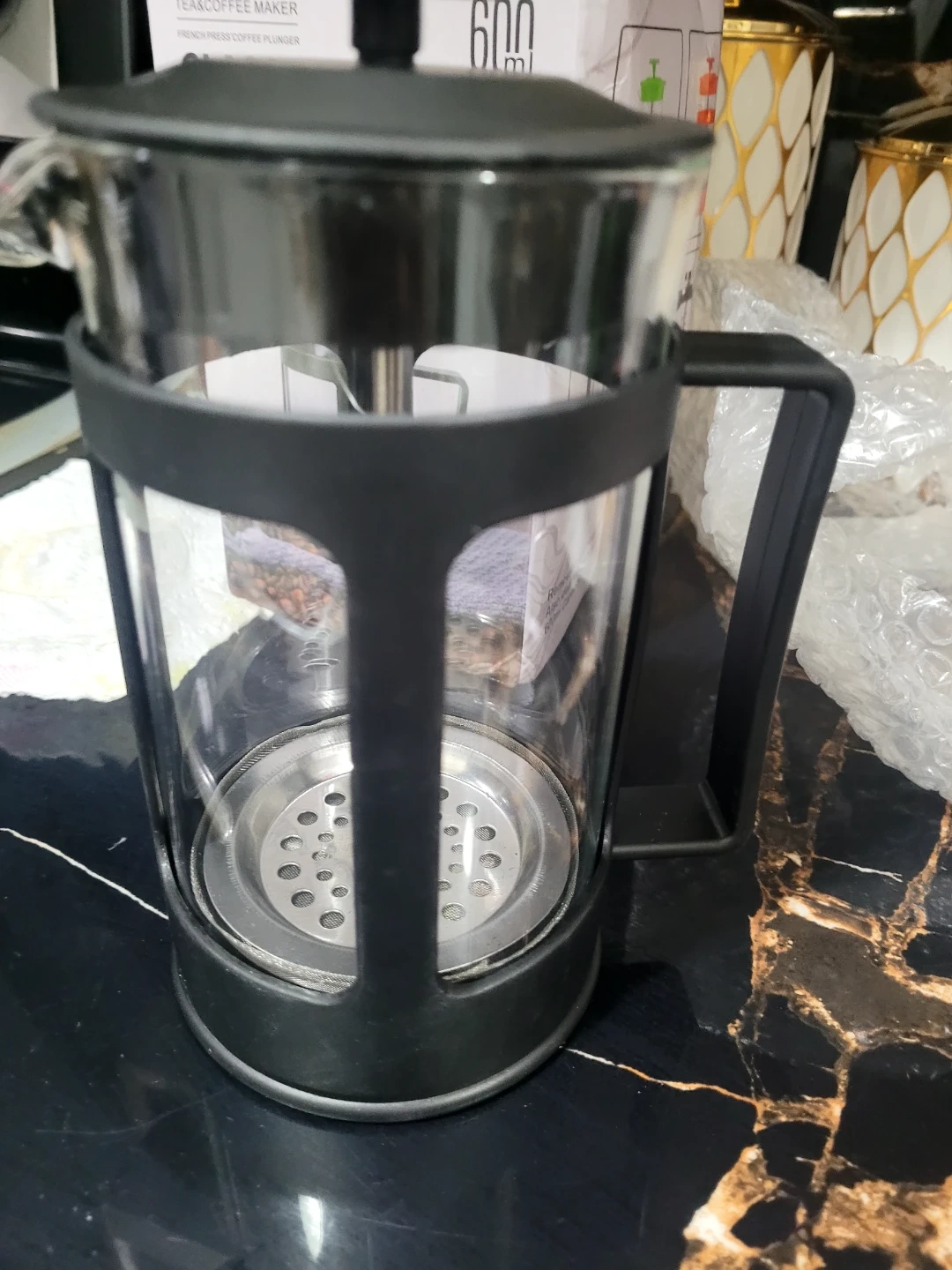 Selling a French press coffee maker! It holds 34 oz and is perfect for brewing a few cups of coffee. It's in great condition and comes with all the components shown in the picture.