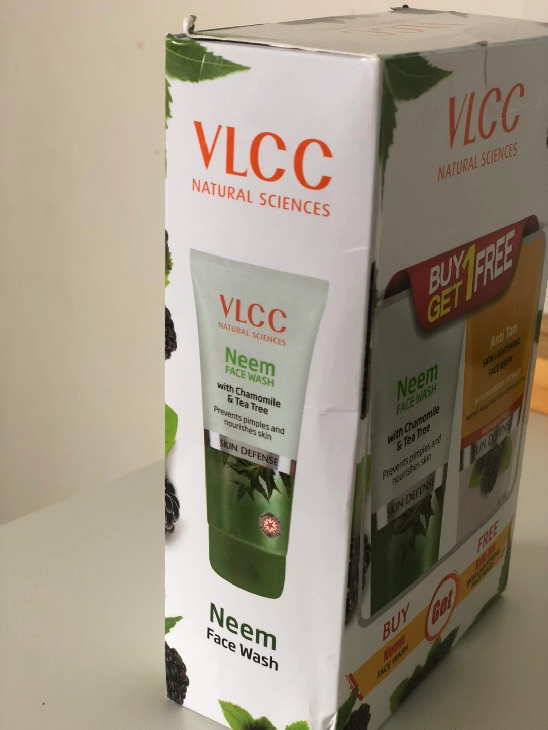 Selling a VLCC Natural Sciences face wash set! It includes Neem Face Wash with Chamomile & Tea Tree, which prevents pimples and nourishes skin, and Anti Tan Skin Lightening Face Wash with Mulberry Extract, which washes away impurities and reduces tan.