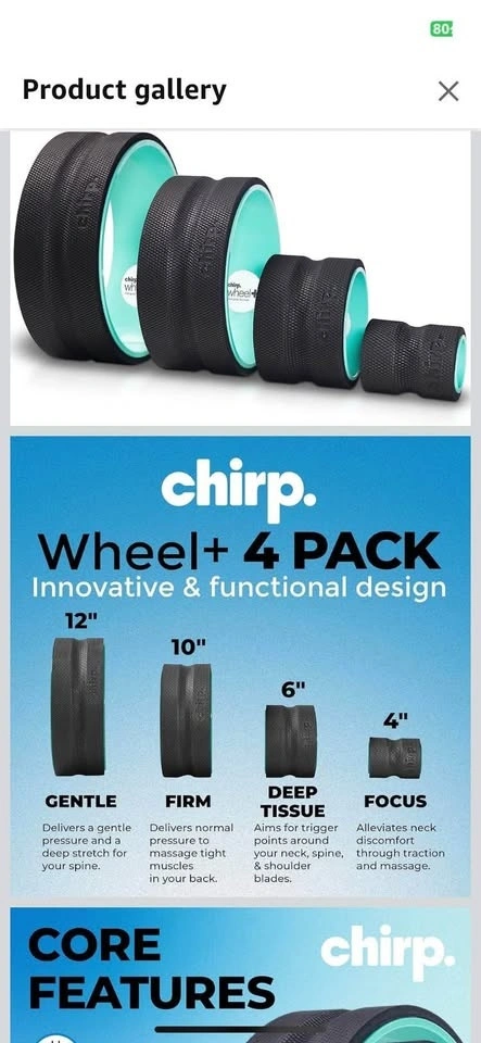 Chirp Wheel Foam Roller – Targeted Back & Neck Relief, Lumbar Spine Stretcher, Spinal Decompression Back Stretcher, Massage Roller with Density Foam for Physical Therapy, Supports 500lbs, 4-Pack Mint