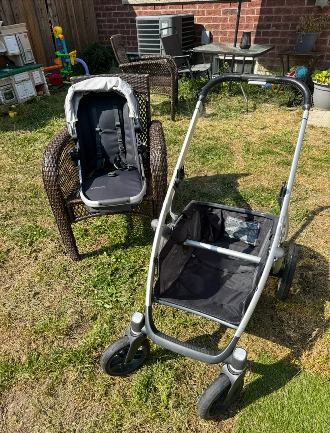 Selling an Uppababy Vista V3 stroller, bassinet cosy ganoush rain cover and mosquito net bundle. in great condition and ready for your little one! The bundle includes the stroller frame, bassinet, and rain cover. Winter ganoush retails 249.99 and stroller and bassinet for 1799$