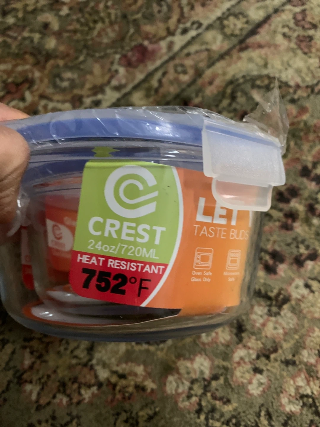 I have a brand new Crest heat-resistant glass container for sale! It holds 24oz/720mL and is safe for oven, microwave, freezer, and dishwasher (top rack). It can withstand up to 752°F