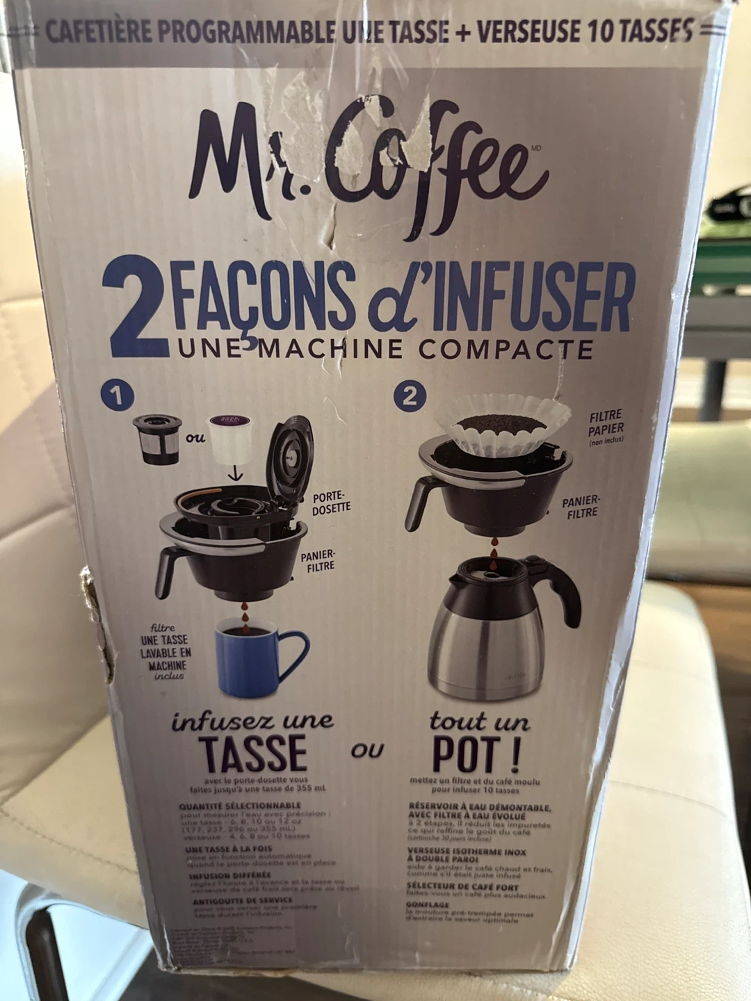 Selling a Mr. Coffee 2-Way Brewer! This compact machine offers two ways to brew: a single cup or a full 10-cup carafe. It's designed to be space-saving on your countertop. The carafe is included, and it's totally programmable for your convenience!
