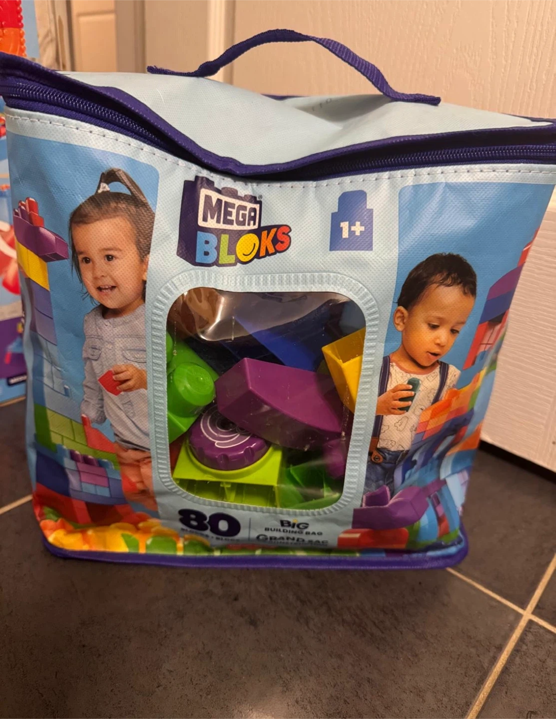 Selling a Mega Bloks Big Building Bag with 80 pieces and a Learn 'N Table. Both are in great condition and ready for a new builder! The building bag is perfect for little hands, and the table offers a fun surface to create on. Table and bag of blocks !