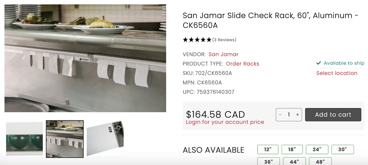 New San Jamar 60" Aluminum Slide Check Rack - Commercial Grade