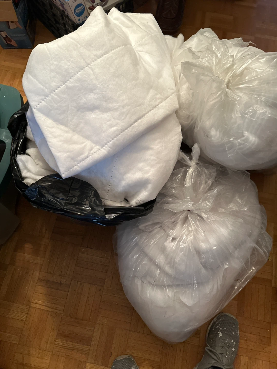 Selling a collection of white quilted fabric pieces. They're in good condition and come in plastic bags for easy transport. Perfect for your next sewing or crafting project!