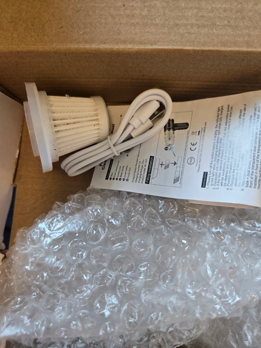 Selling a black cordless handheld vacuum cleaner! It's lightweight and portable, perfect for quick cleanups. Comes with the box, charger, and instructions