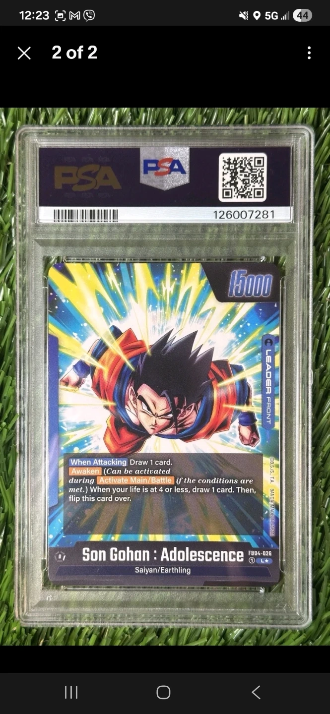 Selling a Dragon Ball Super Fusion World card featuring Gohan Adolescence. It is grades by psa 10.