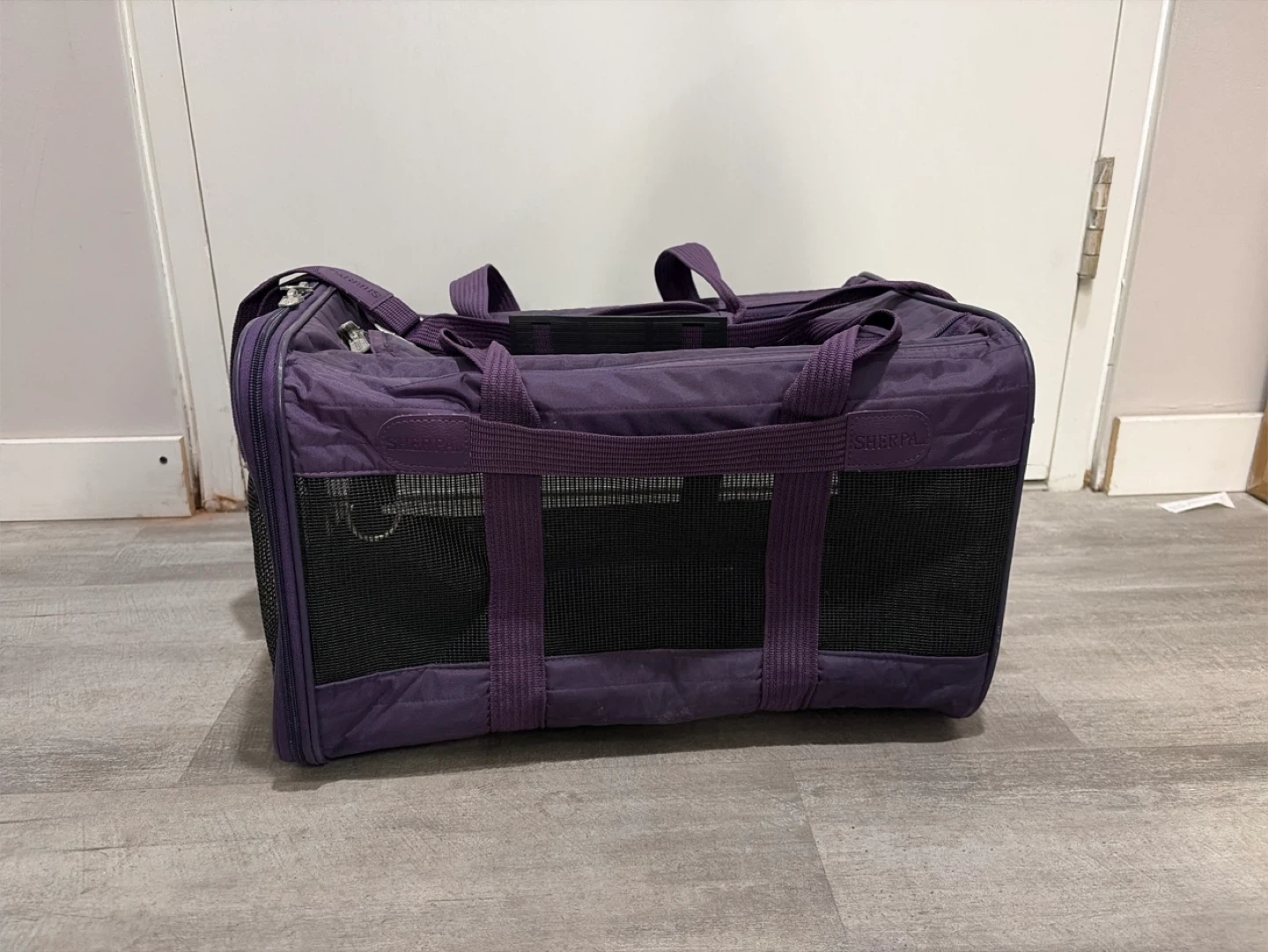 Selling a Sherpa Original Deluxe pet carrier in large plum colour! It's in great shape and ready for your furry friend. Perfect for travelling or vet visits