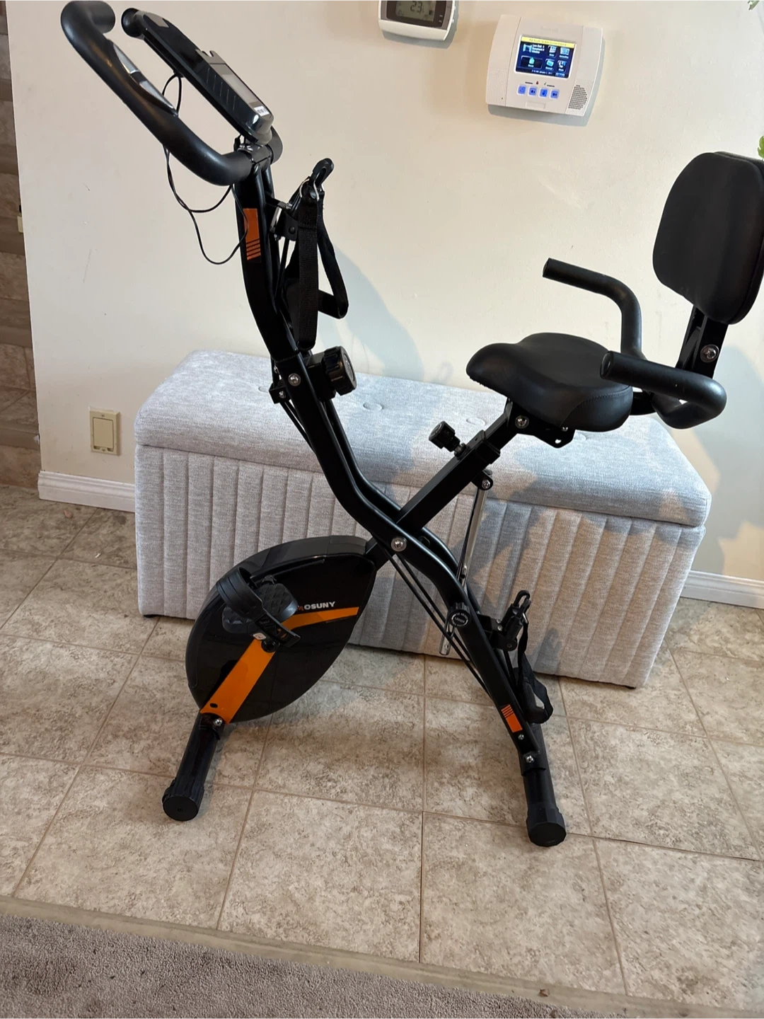 Selling a Mosuny exercise bike in New condition! It's perfect for getting a workout in at home. The bike features adjustable resistance and a digital display to track your progress. Great for small spaces and easy to store!