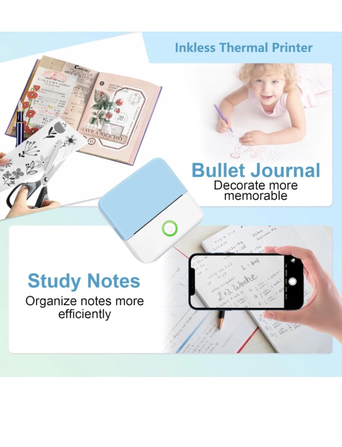 This mini portable sticker printer is perfect for study notes, printing labels, photos, memos, lists, and DIY cut pictures! It's great for bullet journaling and decorating notes to make them more memorable. It's also lightweight and portable, so you can record life perfectly!