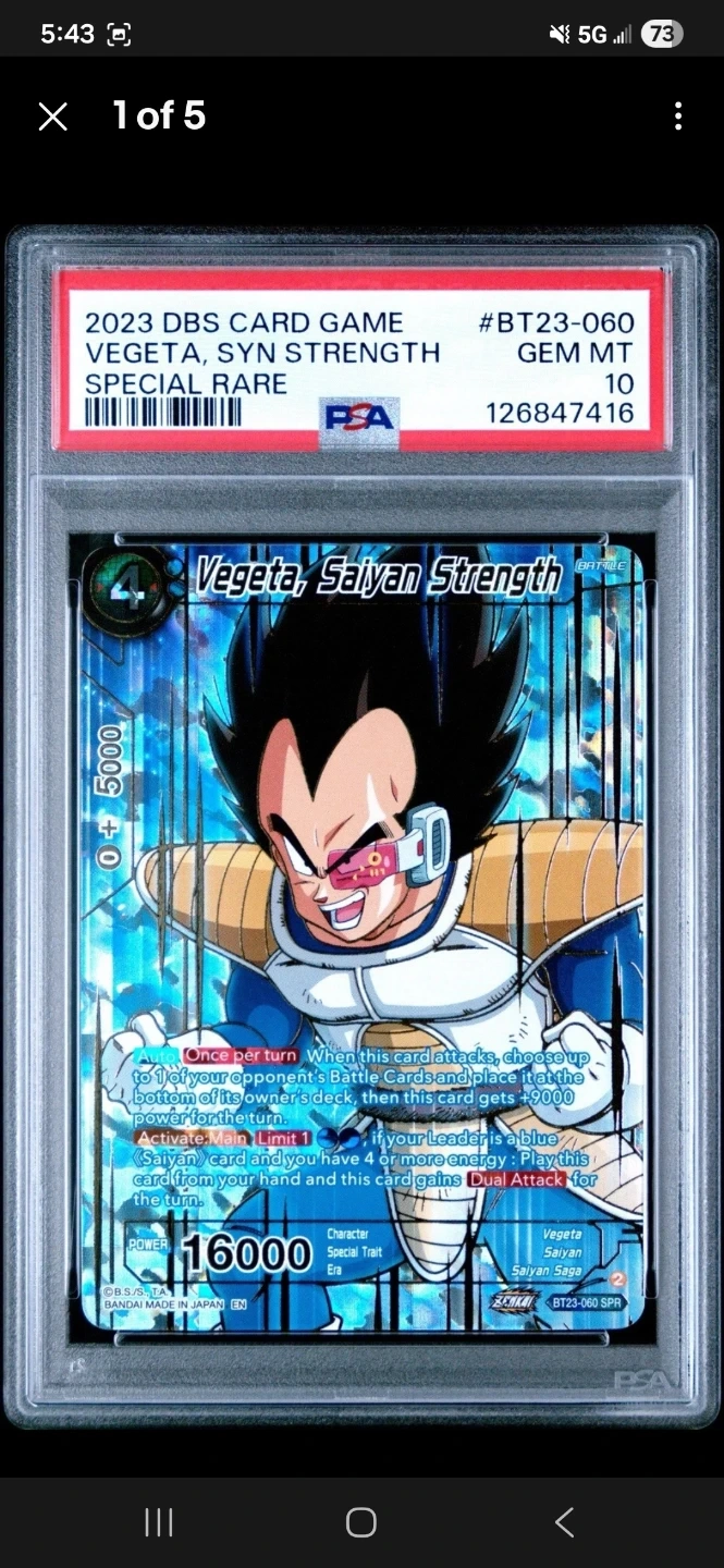 Buy & Sell2023 DBS Card Game Vegeta, Saiyan Strength GEM MT 102023 DBS Card Game Vegeta, Saiyan Strength GEM MT 10$70Selling a 2023 DBS Card Game Vegeta, Saiyan Strength card. It's a special rare card and has been graded GEM MT 10.ConditionNewWHERE TO MEEToutside my houseView MapSELLERverifiedgastonWashington Heights872 reviews0 chats·0 favorites·8 viewsSEND CHAT TO SELLERHi gaston! I’m interested in your listing.Hi gaston! I’m interested in your listing.Get the Karrot app to chatSign In to chat
