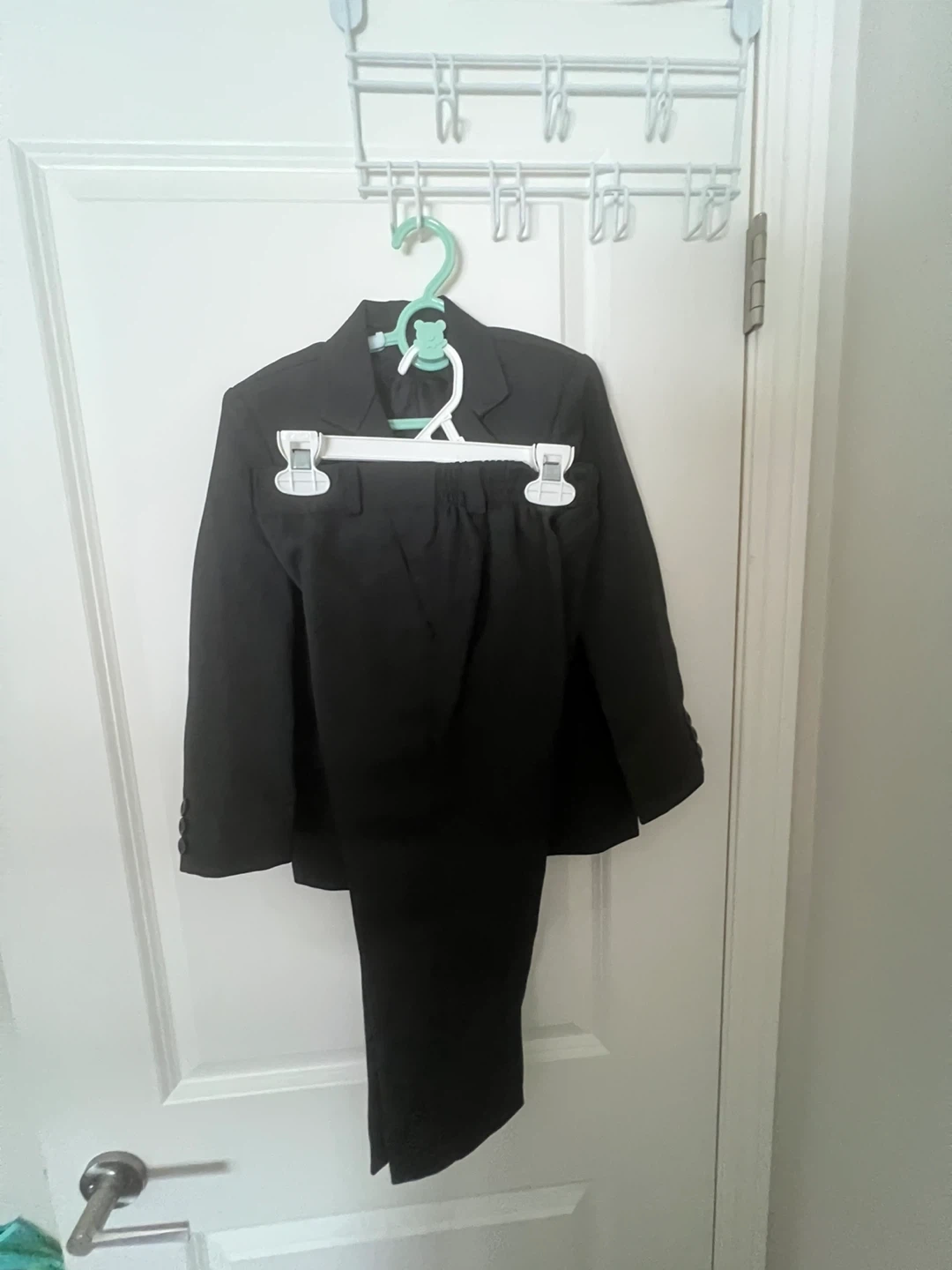 Selling a cute black suit for kids! It includes both the jacket and pants. Perfect for any special occasion or just dressing up