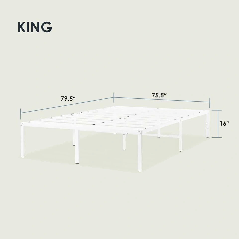 Mellow 16 Inch Metal Platform Bed, Heavy Duty Steel Slats, No Box Spring Needed, Easy Assembly, White, King
