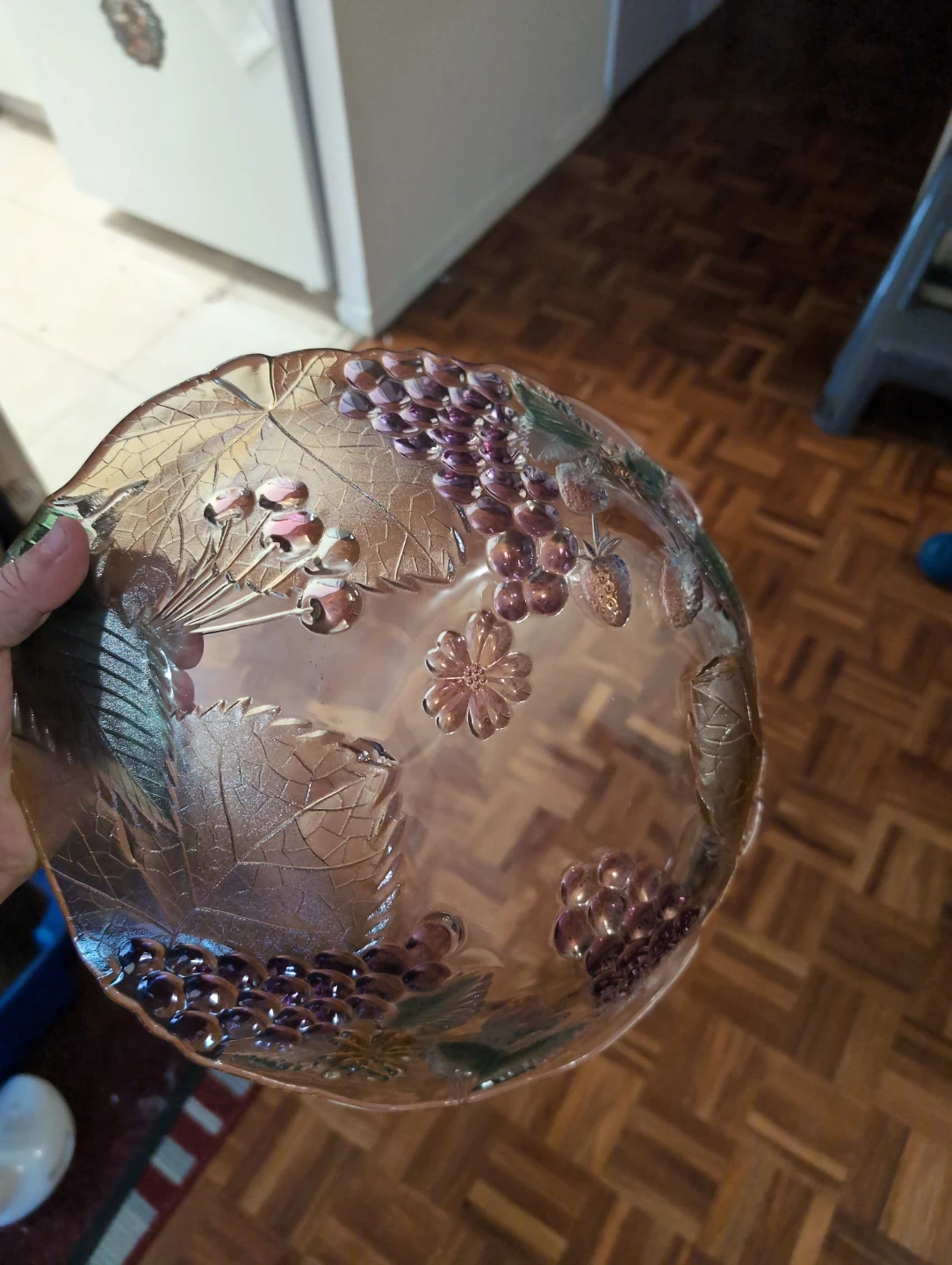 Buy & SellVintage Grape Pattern Glass BowlVintage Grape Pattern Glass BowlFreeSelling a lovely vintage glass bowl featuring a grape pattern. It's in great condition and would make a beautiful addition to any table setting!ConditionNewWHERE TO MEETBetween Shoppers & Tim HortonsView MapSELLERverifiedMarlaN St. James Town47434 reviews1 chats·0 favorites·21 viewsSEND CHAT TO SELLERHi Marla! I’m interested in your listing.Hi Marla! I’m interested in your listing.Get the Karrot app to chatSign In to chat