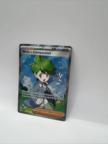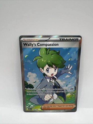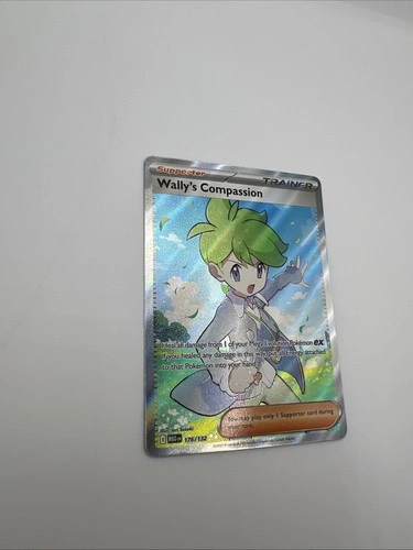Elevate your Pokémon TCG collection with the Wally's Compassion 176/132 Ultra Rare card from the Mega Evolution Base Set. This captivating Trainer-Supporter card features the beloved character Wally in a stunning full art illustration by Iori Suzuki. The card showcases a holographic finish that adds a mesmerizing shine to the vibrant multi-color design, making it a standout addition to any deck or display. Produced by Nintendo, this English-language card is suited for ages 4 and up and adheres to standard card size dimensions. It's important to note that this card is not autographed and is not a vintage item. The card is presented in non-graded form, allowing you the freedom to assess its quality for yourself. Add this exquisite piece to your Pokémon TCG collection and enjoy the strategic depth it brings to your gameplay.