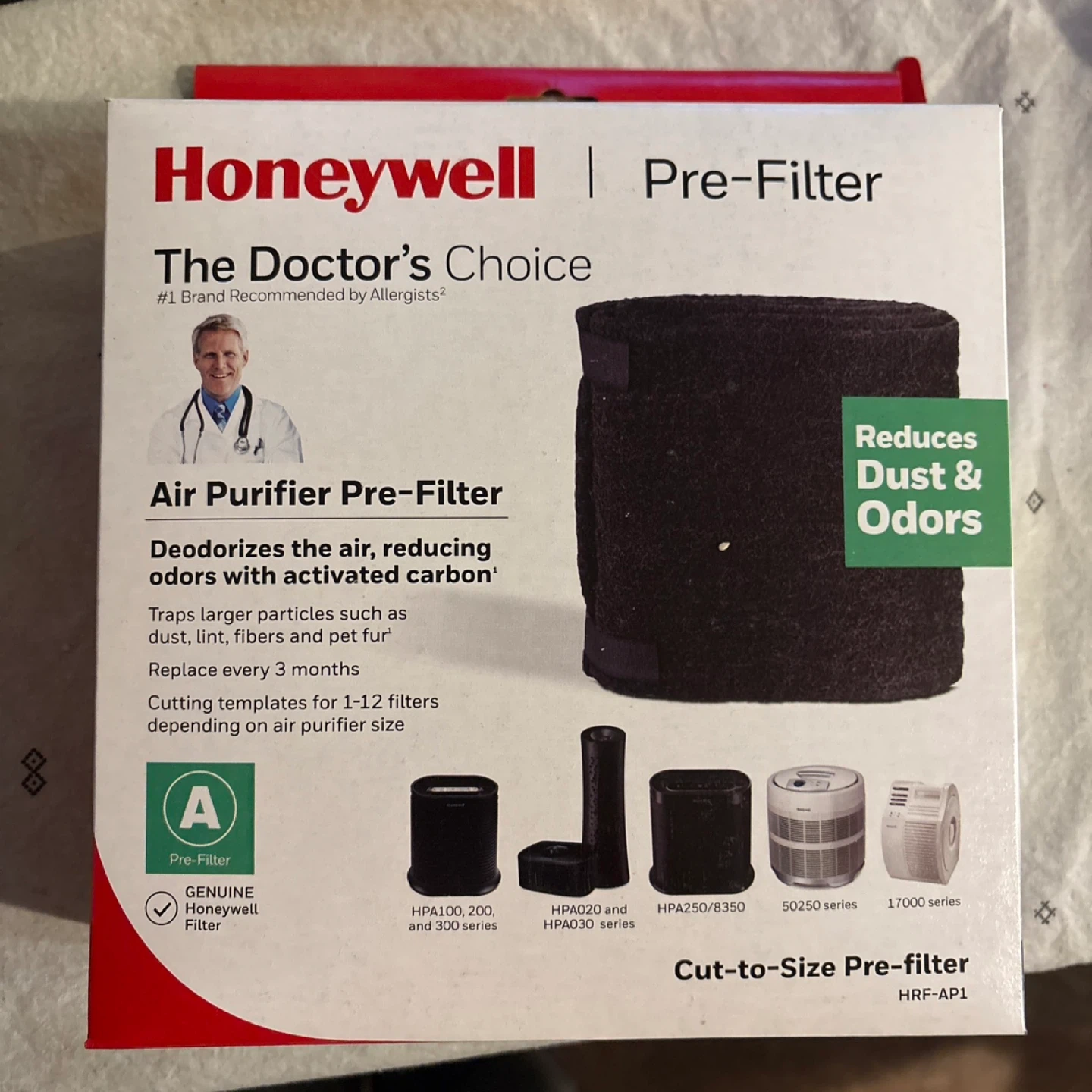 Keep your air purifier running smoothly with this Honeywell Air Purifier Pre-Filter! It deodorizes the air, reducing odors with activated carbon, and traps larger particles like dust, lint, and pet fur. Replace every 3 months for best cleaning performance. It's the Doctor's Choice and #1 Brand Recommended by Allergists