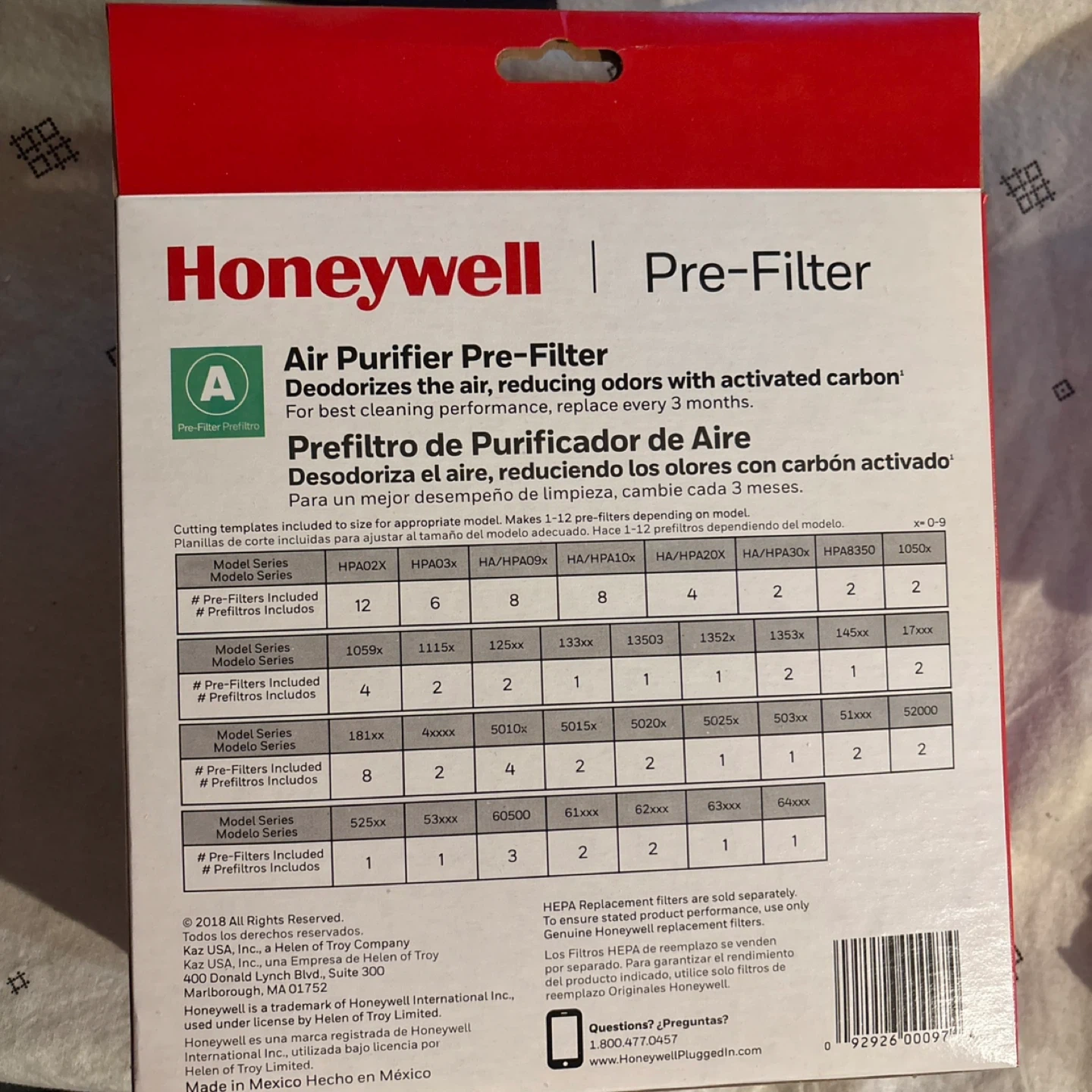 Keep your air purifier running smoothly with this Honeywell Air Purifier Pre-Filter! It deodorizes the air, reducing odors with activated carbon, and traps larger particles like dust, lint, and pet fur. Replace every 3 months for best cleaning performance. It's the Doctor's Choice and #1 Brand Recommended by Allergists