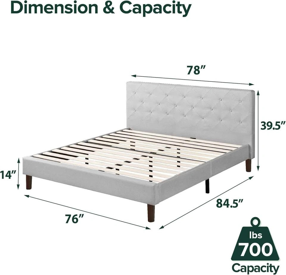Zinus King Upholstered Diamond Stitched Bed Frame NEW