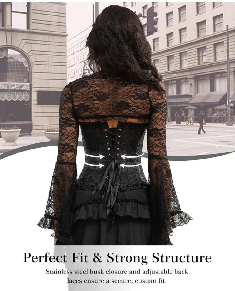 2XL Overbust Corset - Made of high-quality satin material. Flexible bones to give shape and support. Hook eye closure front and lace up on back, lifts and supports the bust, draws in the waist and flattens the tummy.