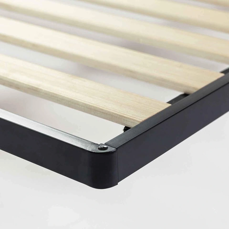 Foam padded tape is added to the steel frame for noise-free use and non-slip tape on the wooden slats prevents your mattress from moving