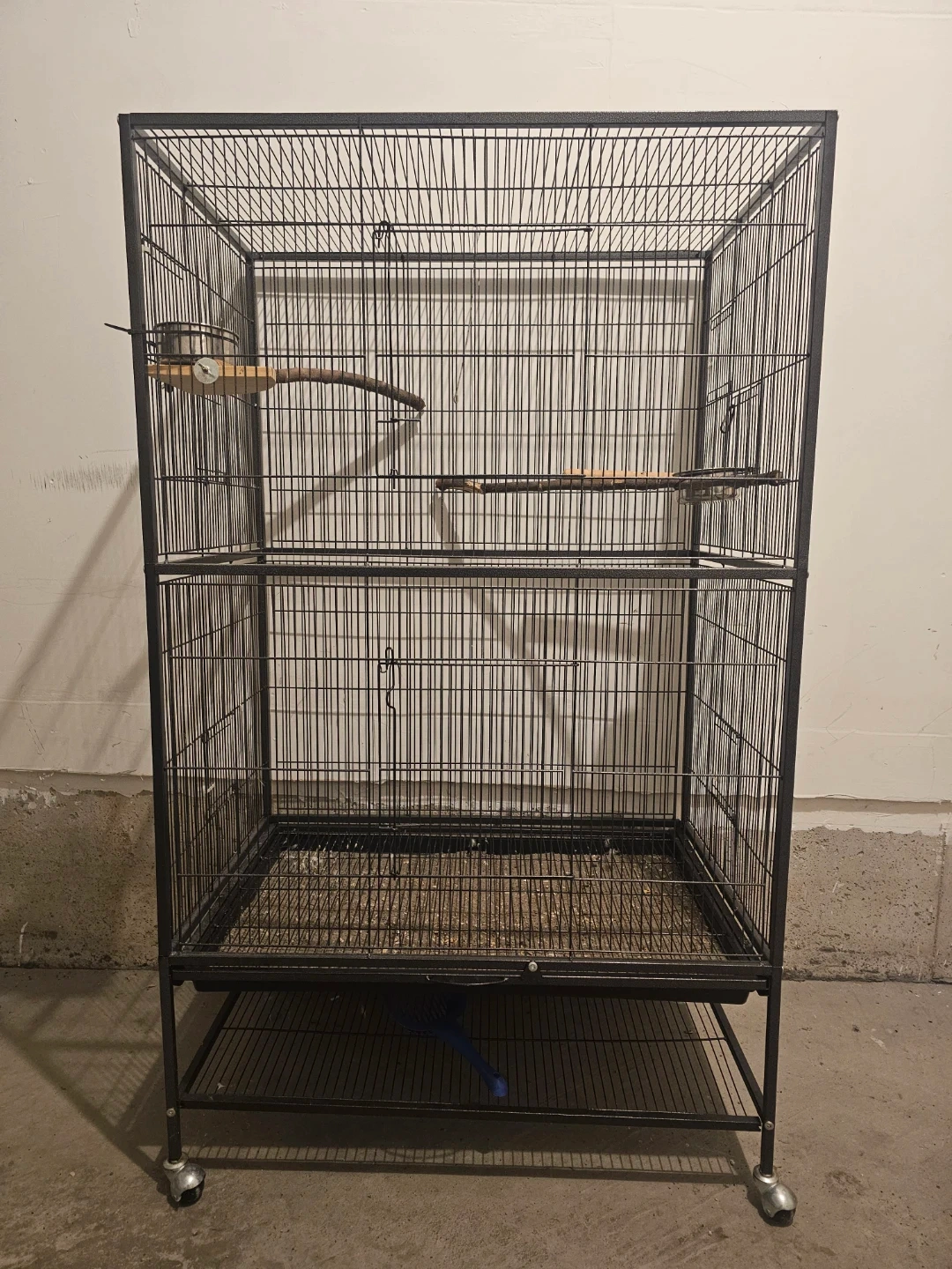 Selling a large, black bird cage with a stand. It's in great condition. I used it about 8 months only for my alexandrine parrot. No rust, no breakage. Easy to move around.