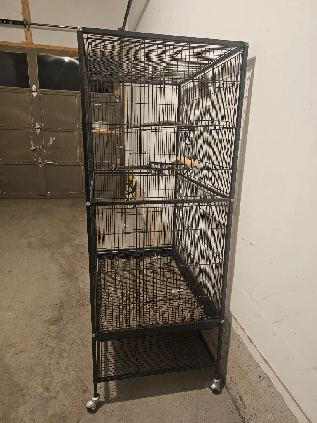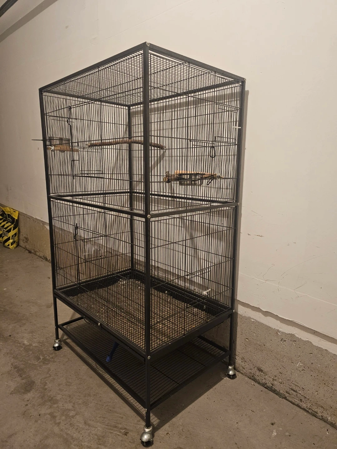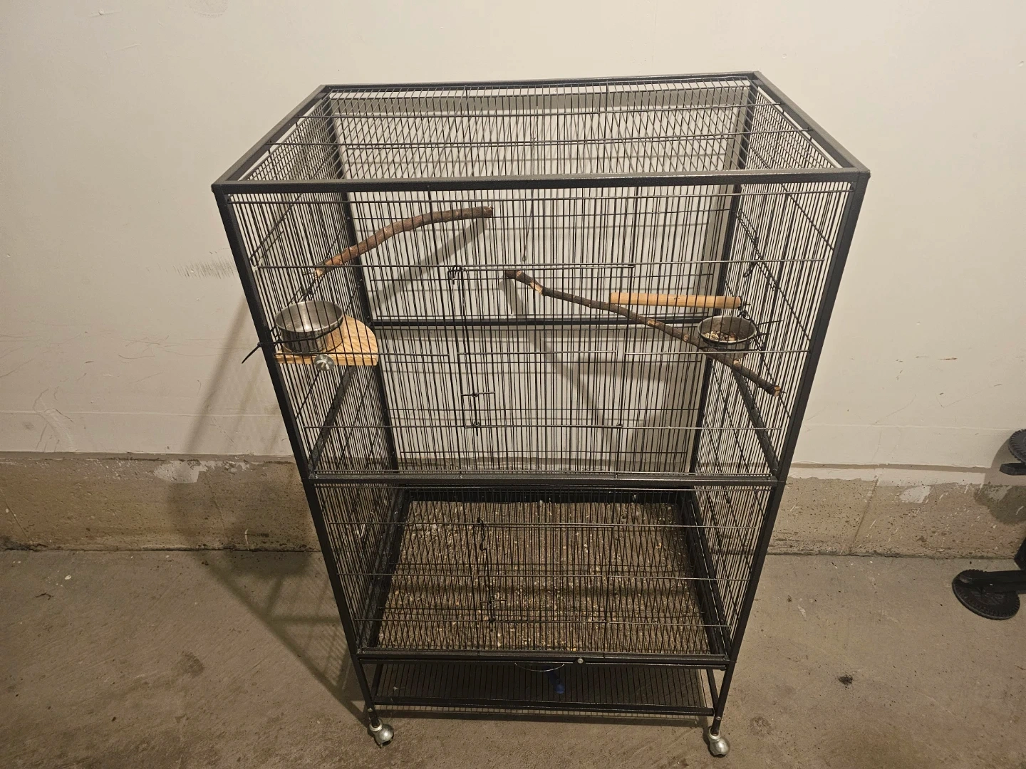 Selling a large, black bird cage with a stand. It's in great condition. I used it about 8 months only for my alexandrine parrot. No rust, no breakage. Easy to move around.