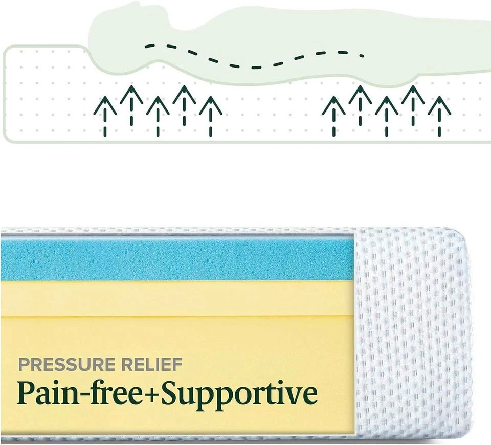 PRESSURE-RELIEVING FOAMS – Layers of ultra-cooling gel and green tea infused memory foam, soft comfort foam and durable, high density base foam
