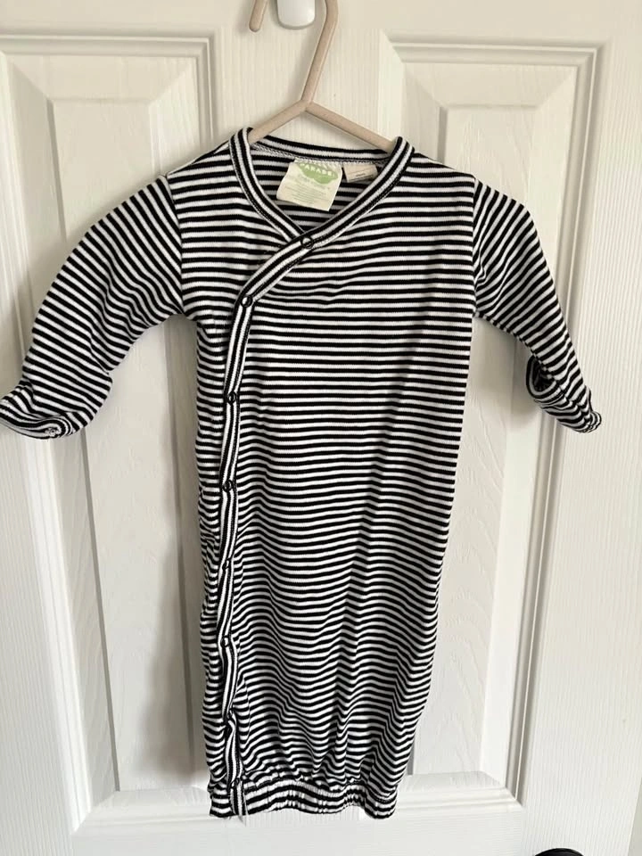 Parade Organics baby gown 0-3 month size 100% GOTS certified organic cotton nickel free snaps Foldover hand mitts From a smoke-free and hypoallergenic pet home. PU only - location - near Symington/Bloor
