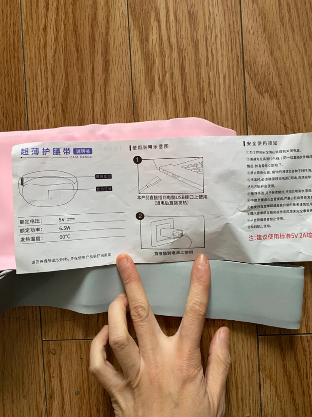 Selling a pink heating pad that's brand new ! It comes with a USB charger, so it's easy to use with your laptop or a wall adapter. The manual indicates it operates at 5V and 6.5W, with a heating temperature of 60°C. Perfect for staying warm and cozy!