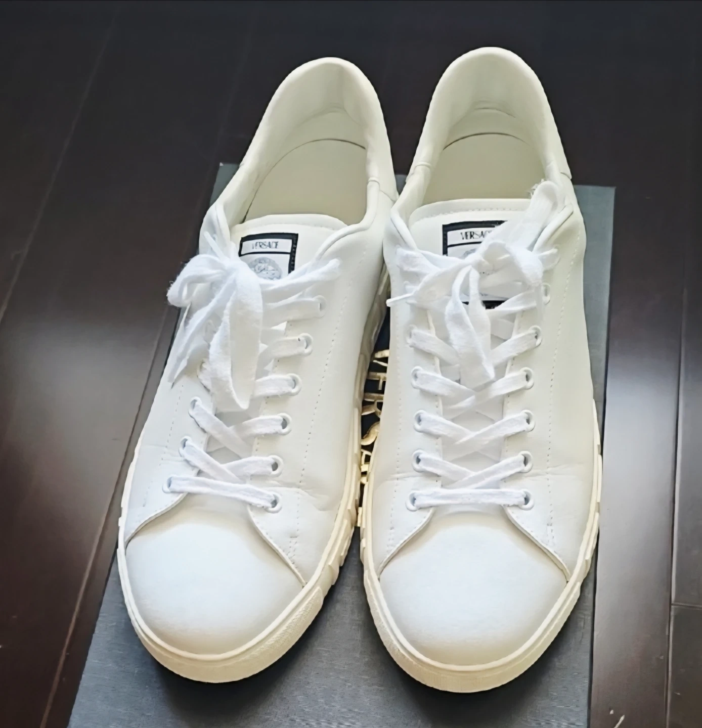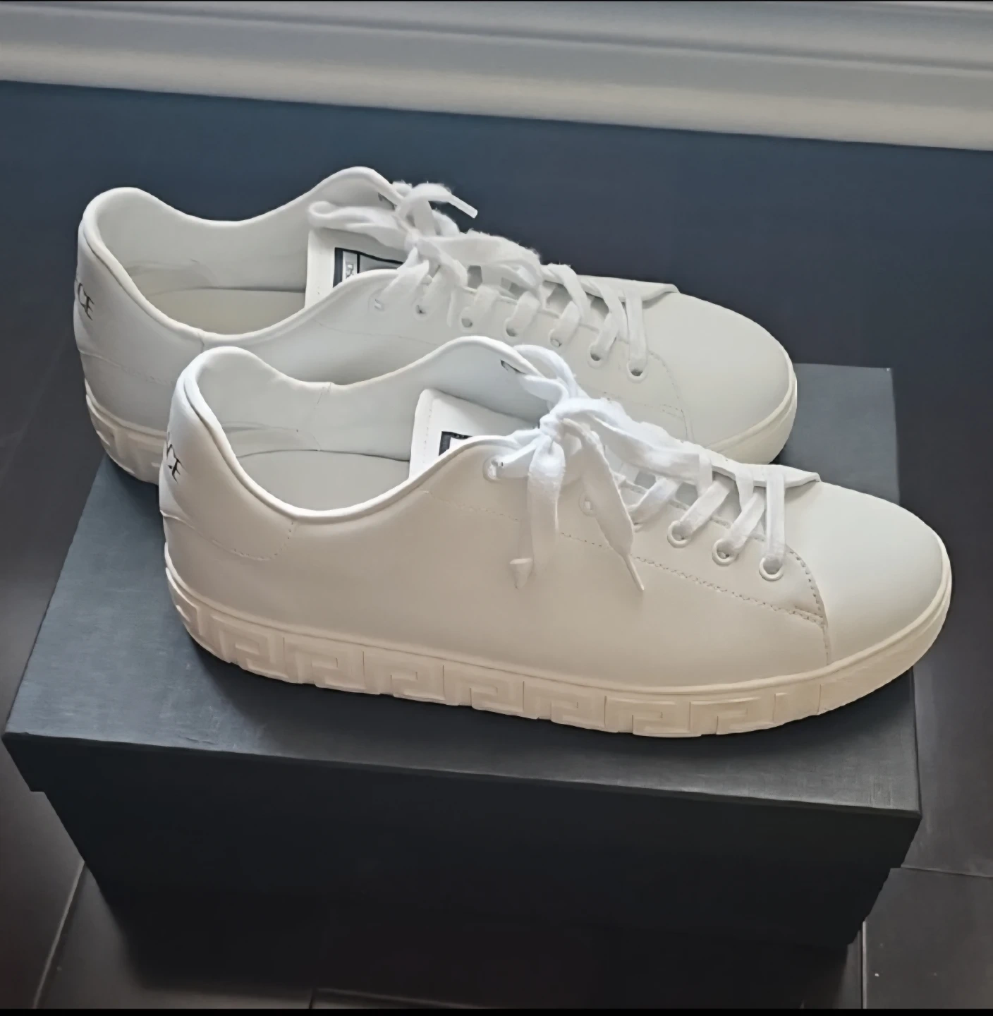 Selling a pair of Versace sneakers in white leather. They come with the original box! These stylish sneakers are in good condition and ready for a new owner. Perfect for adding a touch of luxury to your everyday look.