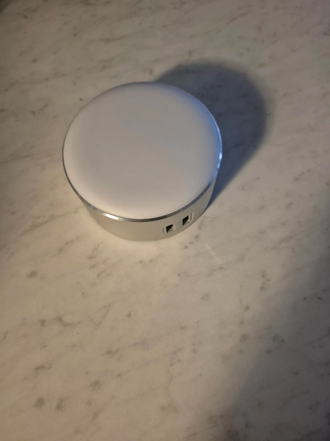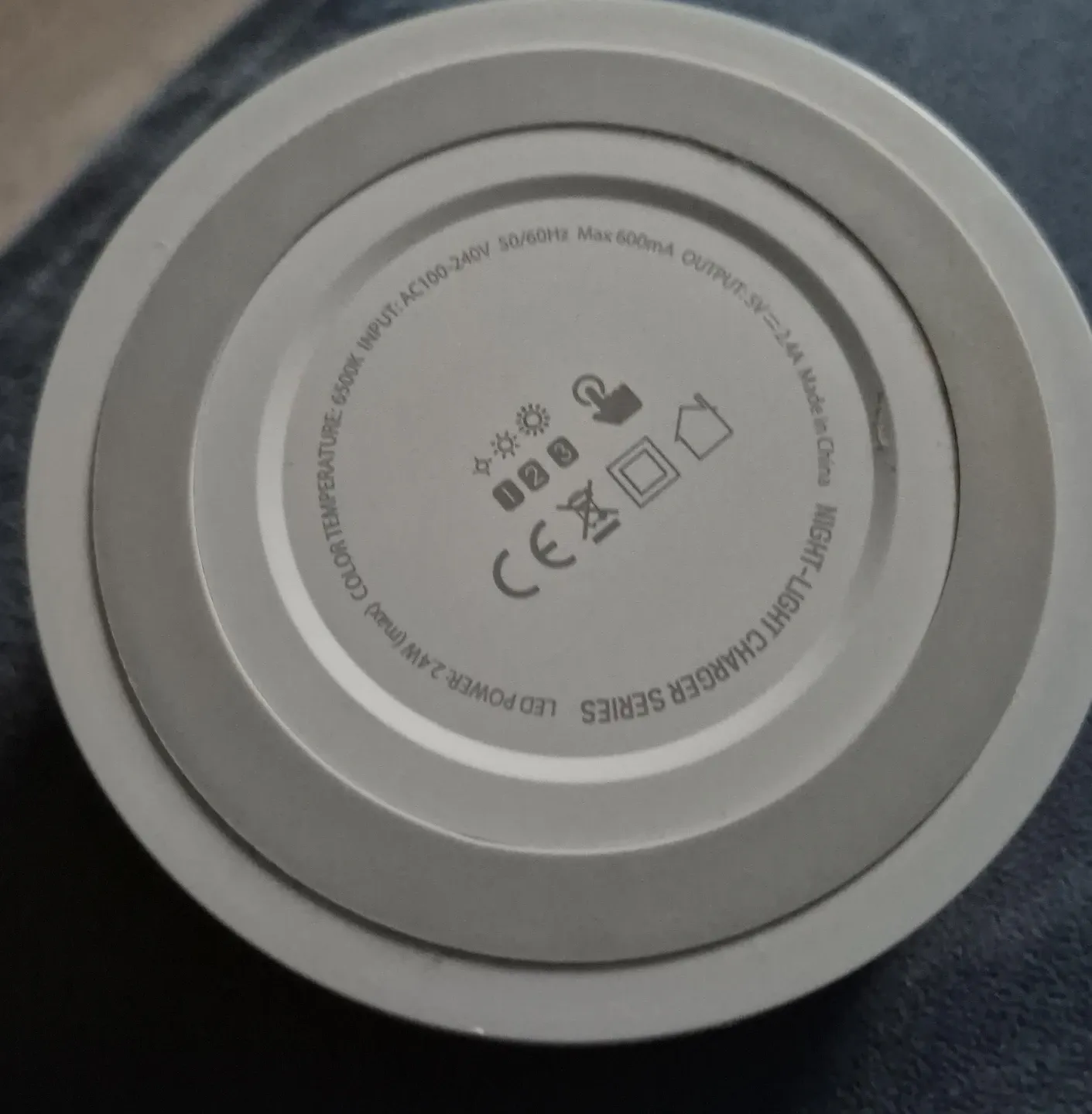 Selling a night light and charger combo! The LED power is 2.4W, and it has a colour temperature of 6500K (max). It requires an input of AC100-240V 50/60Hz Max 600mA and an output of 5V=2.4A. Great for a bedside table or desk