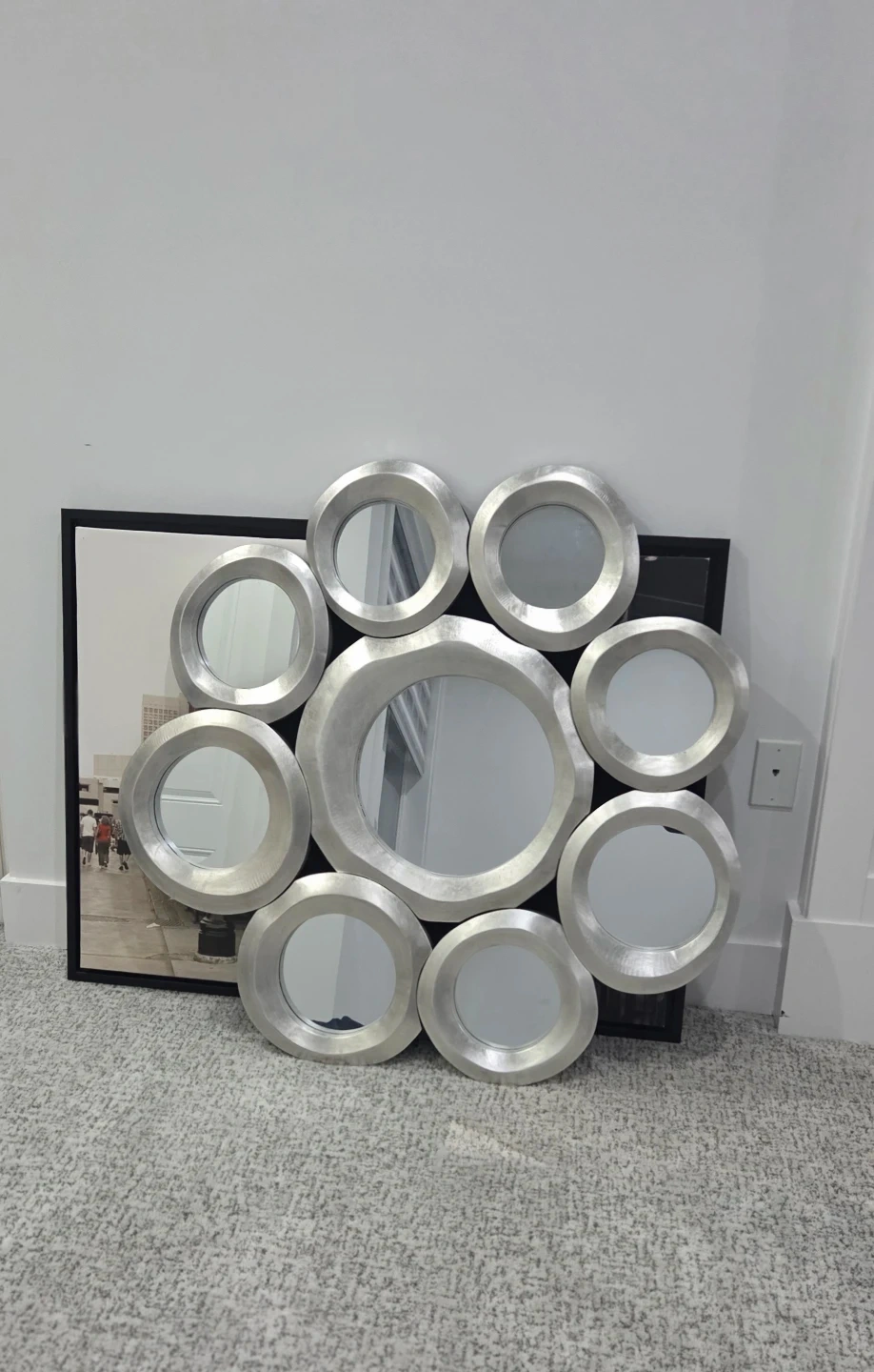 Add a unique touch to your home decor with this eye-catching wall mirror! It features a cluster of round mirrors in varying sizes, all framed in a stylish silver finish. This mirror is sure to make a statement in any room