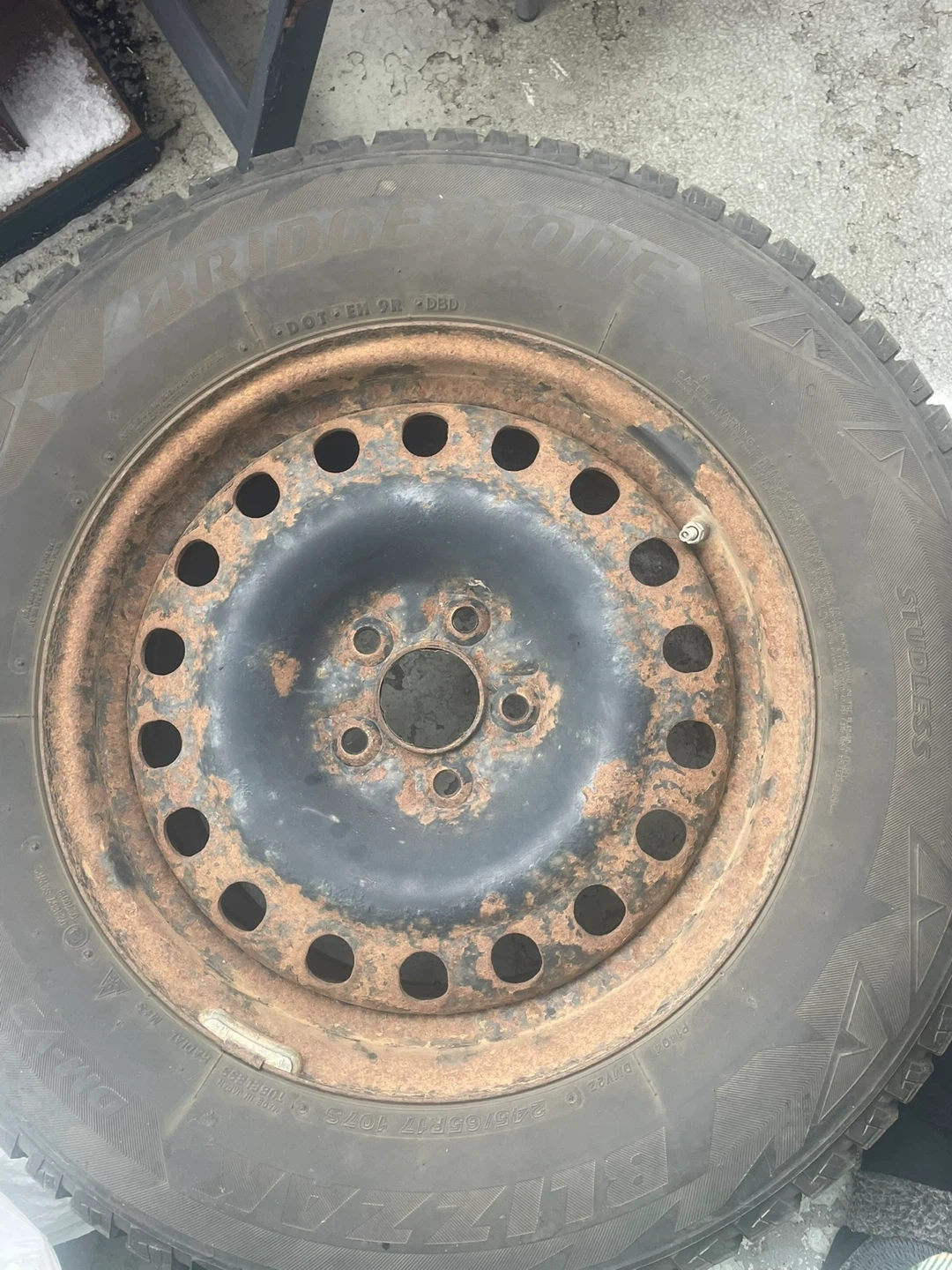 For sale 4 Bridgestone tires, 245/65 R17 with the rims for SUVs. They were only used once last winter and have deep tread, almost like new. $400 or Best Offer cash. The Pickup will be in Scarborough during daylight hours only Thank you.