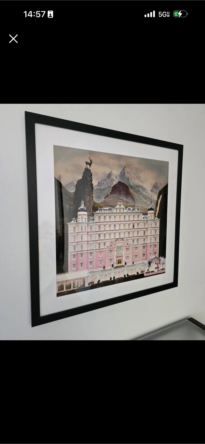 Framed Wes Anderson Grand Budapest Hotel print. Very cool poster to match your stylish home and impress your sophisticated, cultured guests.