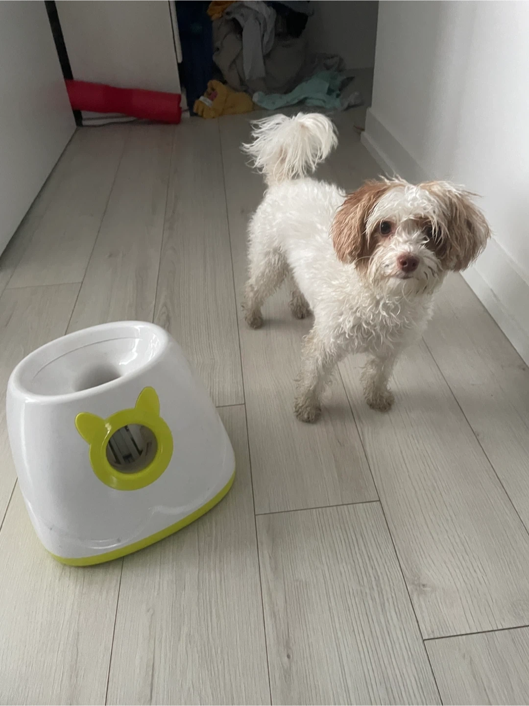 Selling an All For Paws automatic ball launcher for dogs. It has settings for near, middle, and far distances, as well as a random setting. Great way to keep your furry friend entertained!