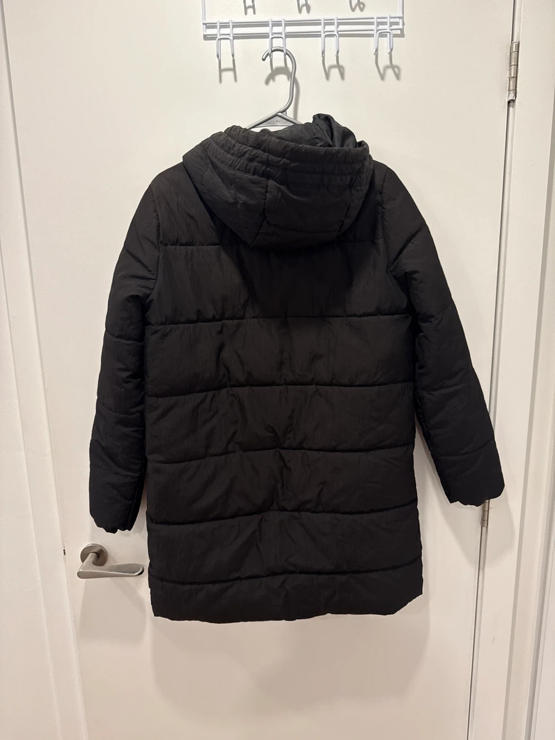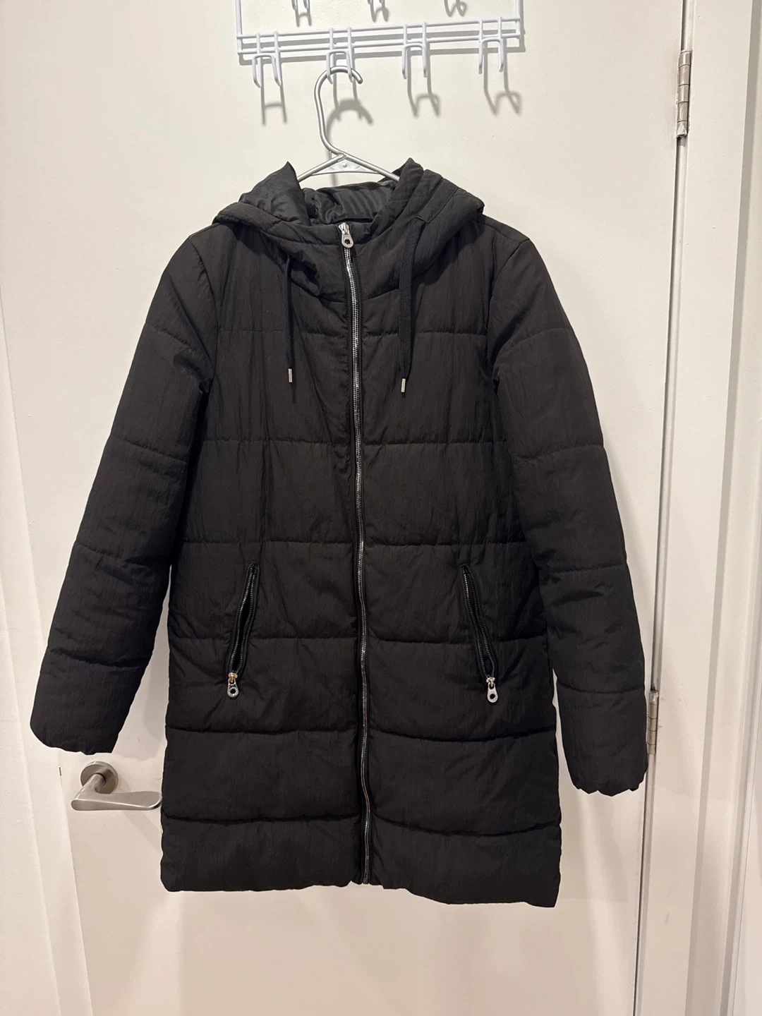Selling a black puffer coat. It's in great condition and ready for the winter season! This coat is perfect for staying warm and stylish during those cold Canadian days