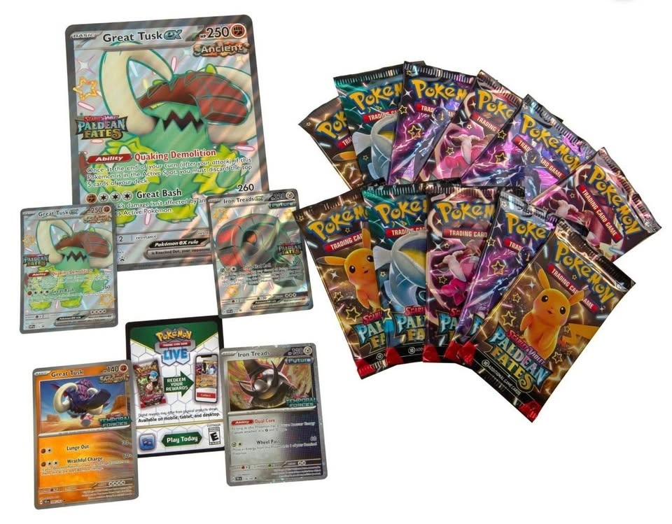 Buy & SellPokemon Paldean Fates Great Tusk ex & Iron Threads Premium CollePokemon Paldean Fates Great Tusk ex & Iron Threads Premium Colle$130Includes: - 10 Paldean Fates Booster Packs - 4 Promo cards - 1 oversized Promo card Cash or E-transfer. Pickup in Surrey.WHERE TO MEETCheck LocationView MapSELLERverifiedAbejeetNewton600 reviews1 chats·1 favorites·17 viewsSEND CHAT TO SELLERHi Abejeet! I’m interested in your listing.Hi Abejeet! I’m interested in your listing.Get the Karrot app to chatSign In to chat