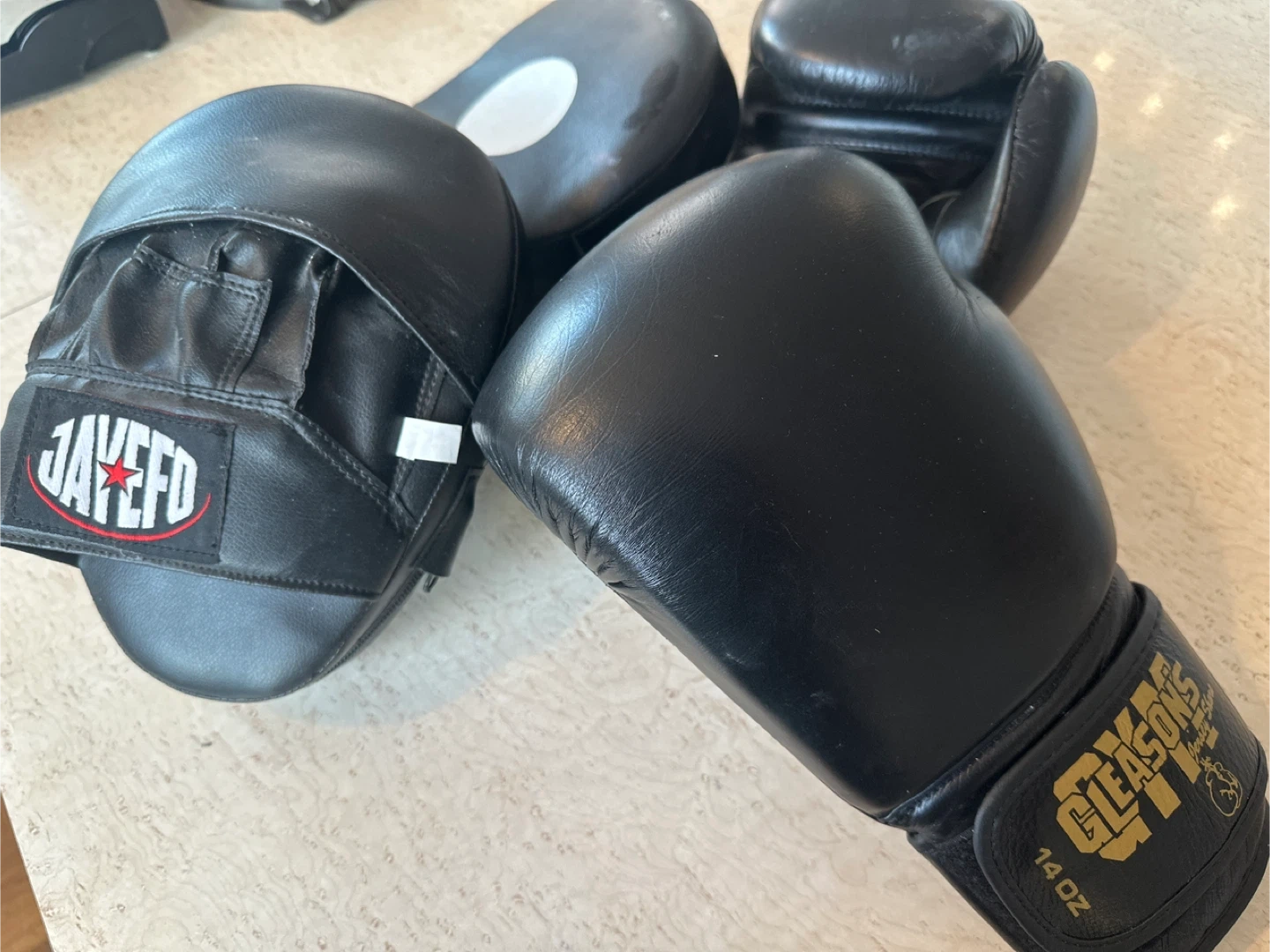 Selling a set of boxing gear including 14 oz. Cleto Reyes boxing gloves branded from Gleason’s gym, for all intents the white house of boxing, and JAYEFO focus mitts. The gloves are 14 oz and in black. Offers welcome