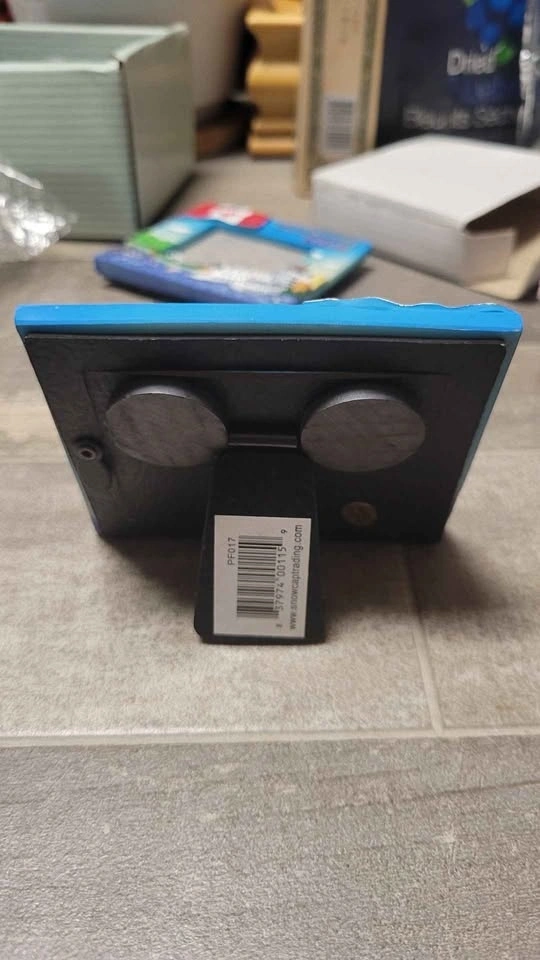Colorful Vancouver-themed 3D resin photo frame featuring iconic landmarks like the Lions Gate Bridge, mountains, seaplane, sailboat, Canada flag, and downtown skyline. Made by Snowcap Trading, known for their Canadian souvenir collectibles. Fits a small photo (approx. 2.5"–3"), perfect as a keepsake, gift, or Vancouver display item.