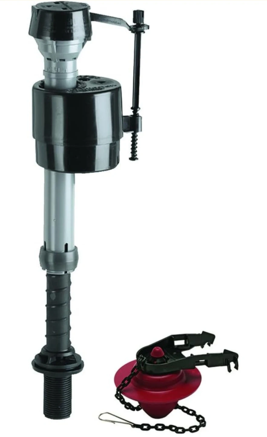 Here's a Fluidmaster universal toilet fill valve and flapper. It fixes noisy, running toilets, and it's easy to install. Replace a leaky flapper and a damaged fill valve!