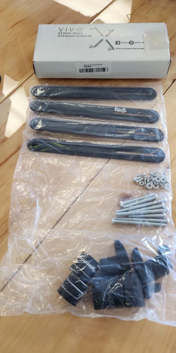 Selling a new VIVO STAND-VAD1 VESA Adapter Bracket Kit! It comes with all the components in the original box. This kit is designed to fit monitors with a screen size of 17"-32", a monitor height of 10.5"-19.6", and a monitor thickness of less than 2.75". It has a weight capacity of up to 22 lbs. Great for setting up your monitor just how you like it!